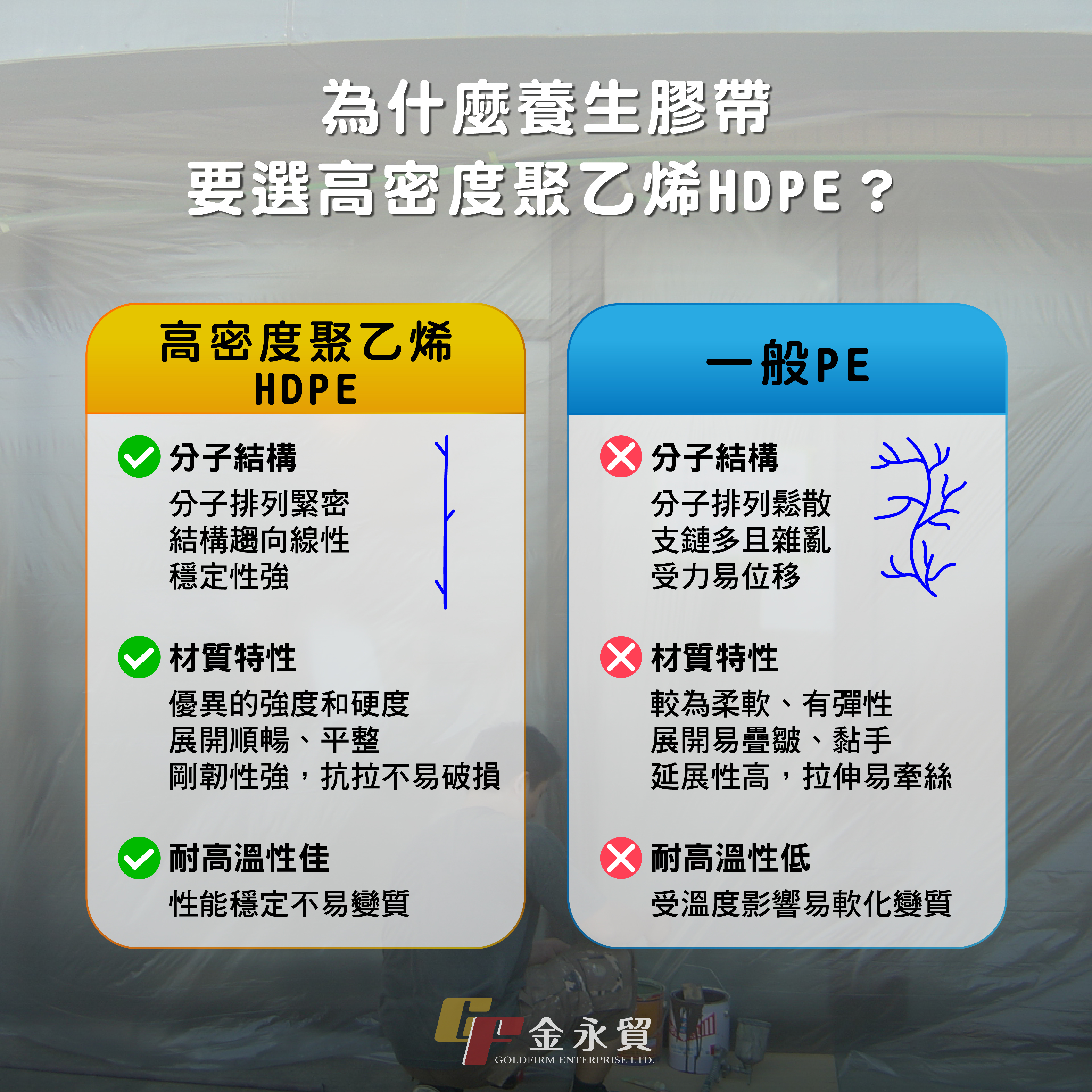 🔍為什麼養生膠帶要選用HPDE(高密度聚乙烯)膜?